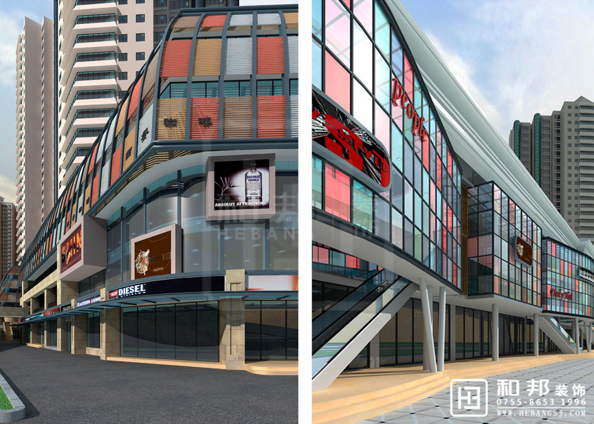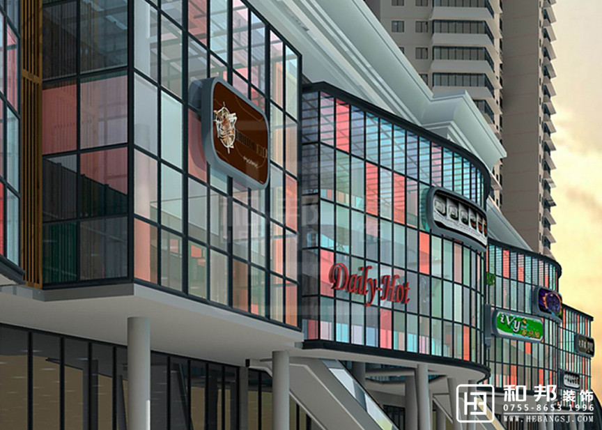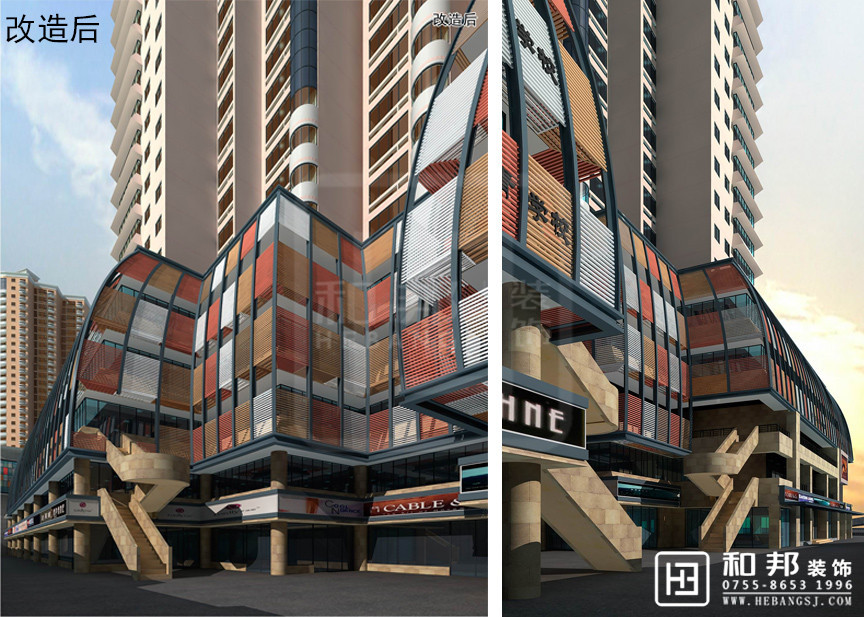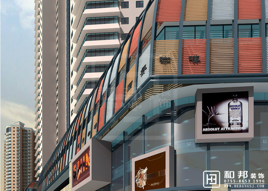 設(shè)計(jì)說明本設(shè)計(jì)樓下商業(yè)區(qū)外觀使用了幾種顏色的拼接了起來,給整個(gè)空間添加了色彩感。