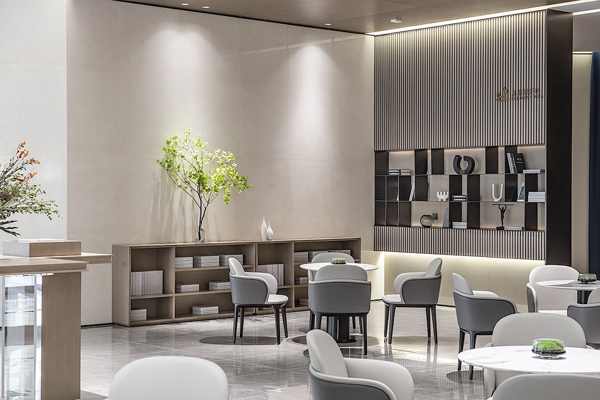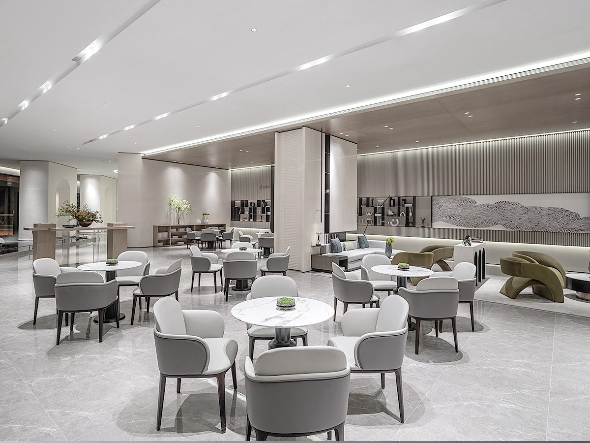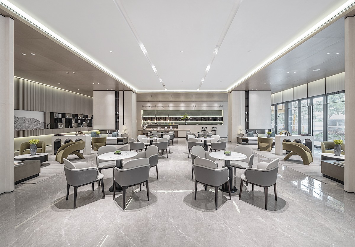 洽談座椅圍繞向外觀看,建筑徐徐展開巨大的曲面畫幅,上演著春日的盎然、夏日的蓬勃、秋日的碩果、冬日的冰霜。