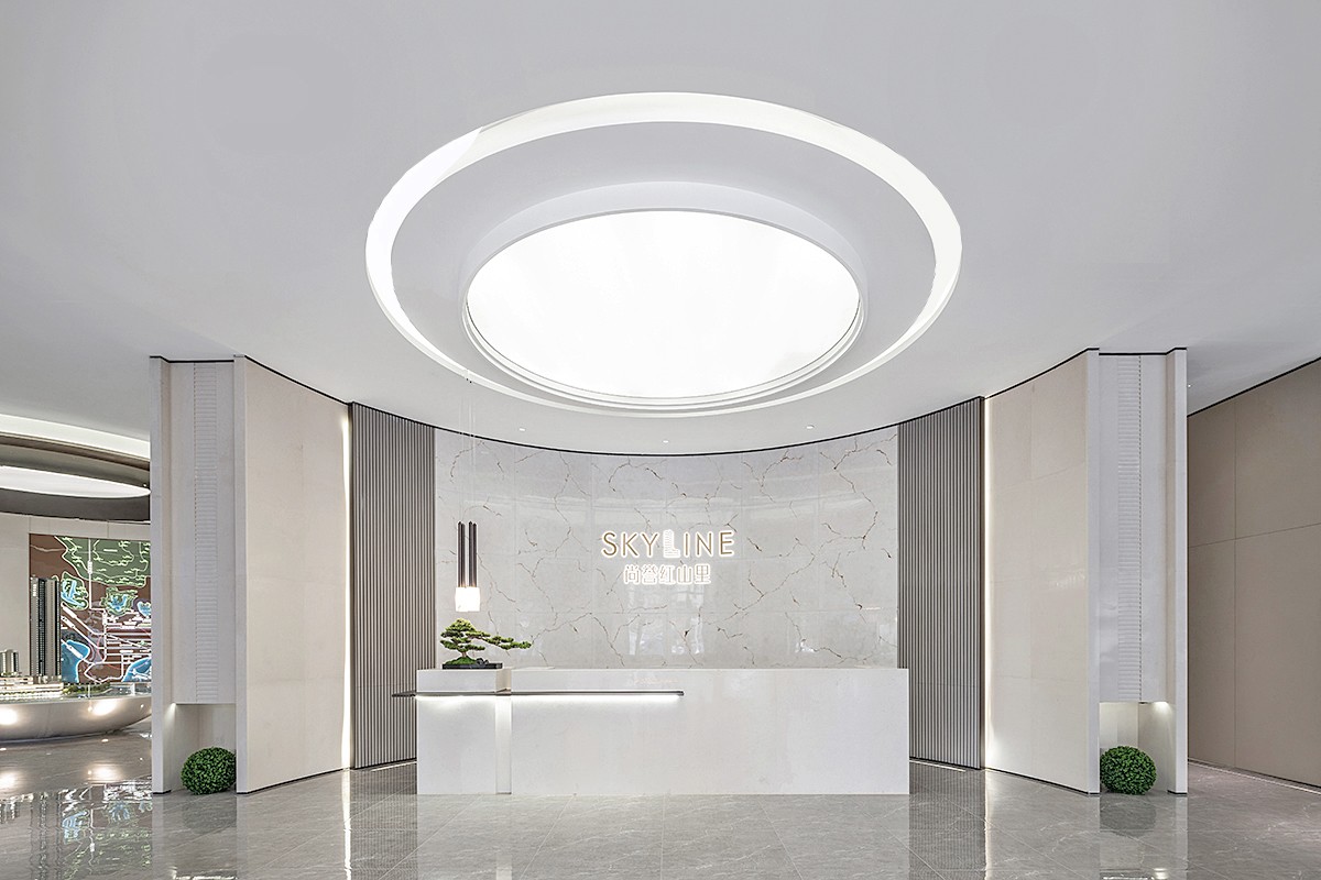 建筑的進入與南向馬路相接,經由庭院完成情緒的轉化,此為項目的前序。建筑墻面幾乎完全透明,經過透明的入口,山川丘陵便進入眼前,弧形穹頂下從天而降,讓自然陪在人身邊,為生活賦予生命的張力。