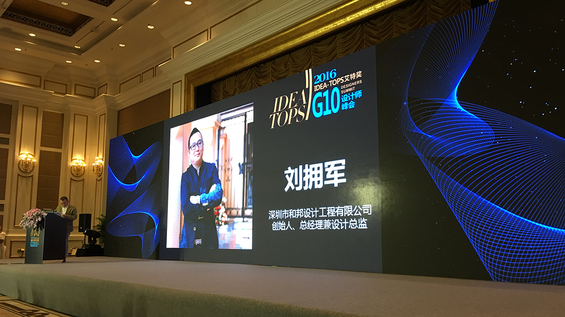 2016年國際空間設(shè)計(jì)大獎——艾特獎!G10設(shè)計(jì)峰會上,鑒于和邦裝飾劉擁軍先生在室內(nèi)設(shè)計(jì)領(lǐng)域的突出表現(xiàn)和卓越成就,應(yīng)邀參加了G10設(shè)計(jì)峰會圓桌會議,對【未來中國的室內(nèi)設(shè)計(jì)方向探討】作了方向性的報(bào)告,得到了中外設(shè)計(jì)師從業(yè)者的高度贊揚(yáng)。